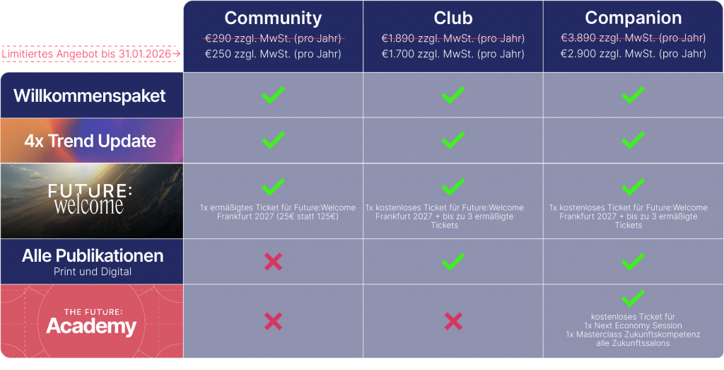 Für Zukunftsenthusiasten, die gern tief in die Welt der Trends, Gegentrends und Transformationen einsteigen.